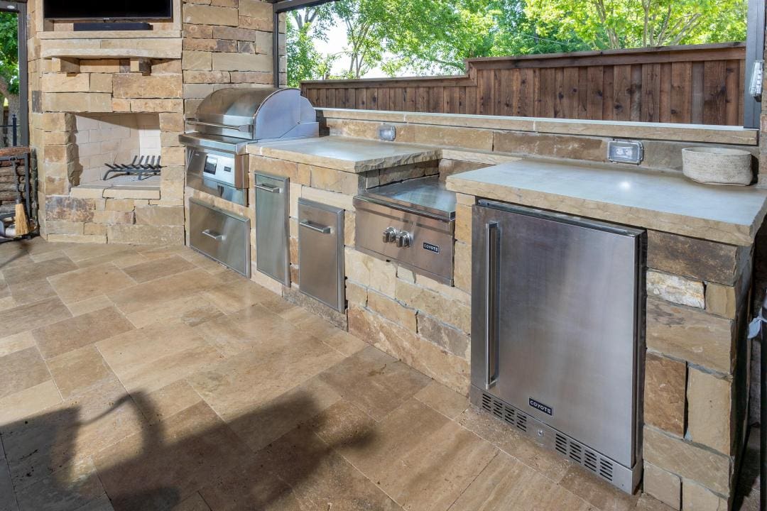 Designed to blend comfort and function, this space features covered lounging areas, stonework accents, and open-air seating that capture true Texas outdoor living. Built by trusted outdoor living contractors in the Dallas Fort Worth area, it offers a stylish setting for relaxing or entertaining.
